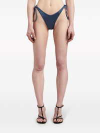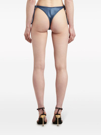 metallic bikini bottoms These side-tie bikini bottoms are punctuated with the signature gold-tone monogram plaque. Highlights - Indigo blue - Metallic effect - Monogram plaque - Low-rise - Side-tie bottoms - Be mindful to try on swimwear over your own garments. Made in Italy Composition Polyamide 79%, Elastane 21% Washing instructions Read Manufacturer Guidelines
