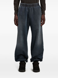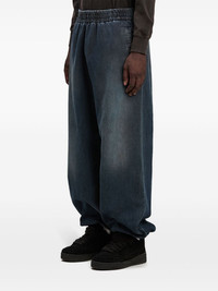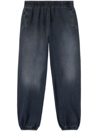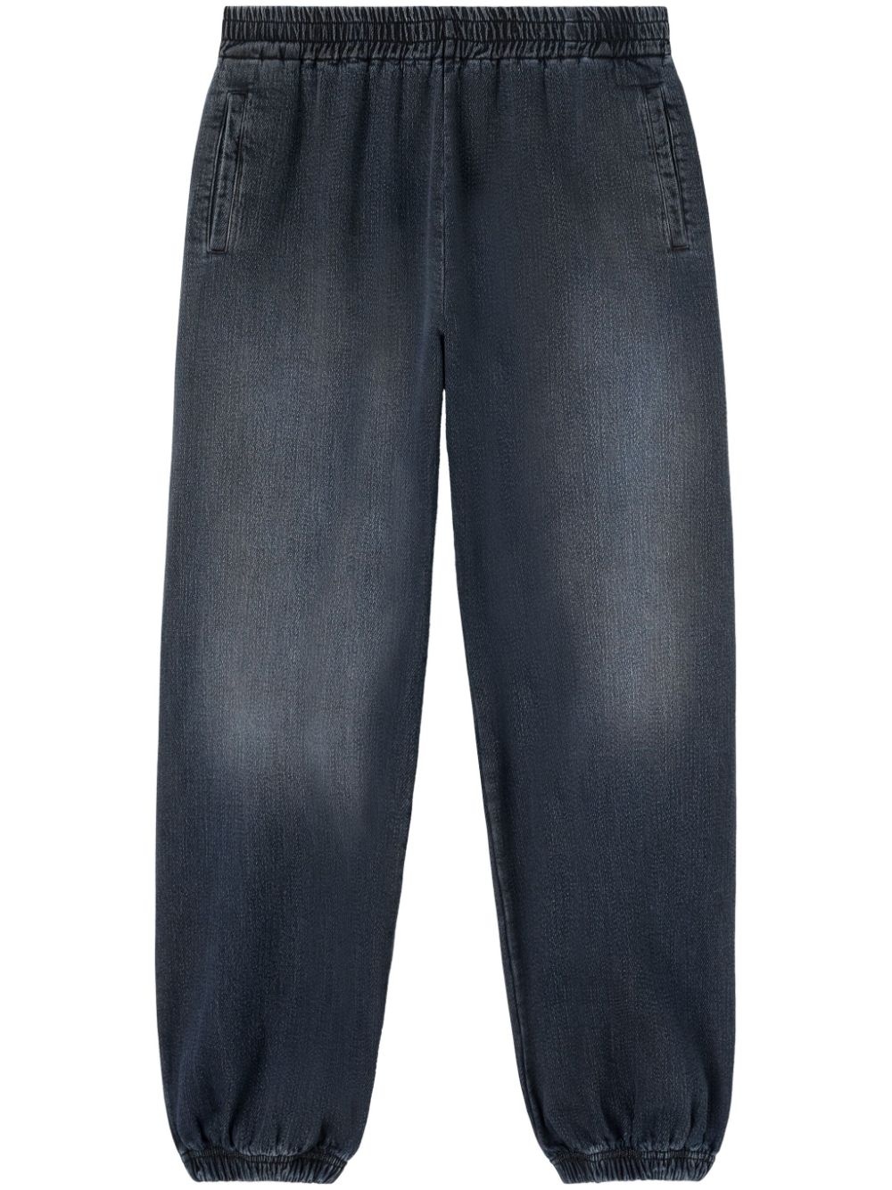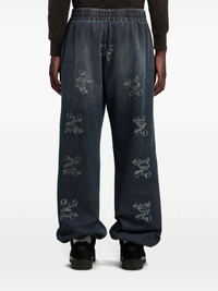 monogram-print elasticated jeans Highlights - Blue - Cotton blend - Monogram print - Elasticated waistband - Two side welt pockets - Straight leg - Elasticated ankles Made in Italy Composition Cotton 94%, Spandex/Elastane 6%