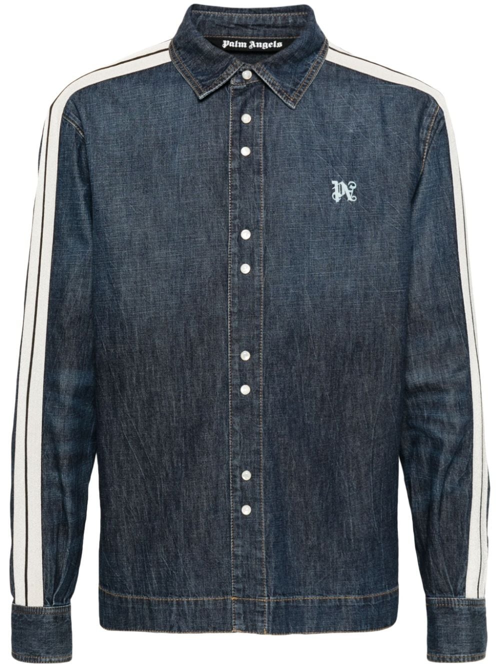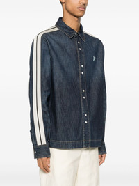 monogram-embroidered denim track jacket Highlights - Blue - Cotton - Monogram print - Side stripe detailing - Classic collar - Front button fastening - Long sleeves - Buttoned cuffs - Straight hem Made In Italy Composition Cotton 100%, Polyester 100% SIZE & FIT Model measurements Height 6 ft 2 in(1.87 m) Bust/Chest 38.18 in(97 cm) Hips 36.61 in(93 cm) Waist 29.13 in(74 cm) FittingInformation Designed for a regular fit, allowing for a comfortably loose fit throughout the body Sturdy and hard-wearing, this denim piece offers no stretch This piece fits true to size – take your usual size Washing instructions Dry Clean Only