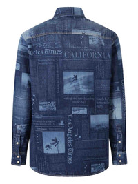 newspaper-print denim shirt Highlights - Medium blue - Newspaper print - Long sleeves - Snap button fastening - Collared neck - Chest pockets Made in Italy Composition Cotton 100% Washing instructions Read Manufacturer Guidelines