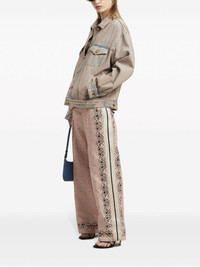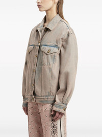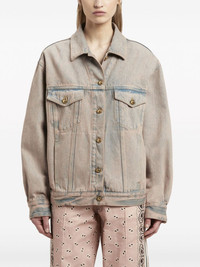 overdye-wash denim jacket This denim jacket speaks to Palm Angels' amalgamation of LA-infused laidback aesthetic and Italian craftsmanship. It's cut from cotton denim to a classic trucker silhouette and is elevated by a pink-hued overdye wash that lends a casual and lived-in feel. Highlights - Pink - Cotton - Denim - Garment dyed - Classic collar - Front button fastening - Embossed gold-tone buttons - Two chest flap pockets - Long sleeves - Buttoned cuffs - Straight hem Made in Italy Composition Polyester 100%, Cotton 100% Washing instructions Read Manufacturer Guidelines