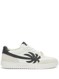 Palm Beach University sneakers The Palm Angels University trainers take inspiration from classic American college styles. Shaped to a low-top silhouette, this leather pair highlights the label's signature palm tree motif on the side. A gold-tone logo plaque adorns the laces. Highlights - White/black - Leather/suede - Panelled design - Contrasting branded heel counter - Logo-print tongue - Front lace-up fastening - Gold-tone logo plaque - Palm tree motif - Perforated toe box - Round toe - Embossed logo to the side - Flat rubber sole - When buying this unisex item, keep in mind that it is graded in standard men's sizing. Made in France Composition Leather 100%