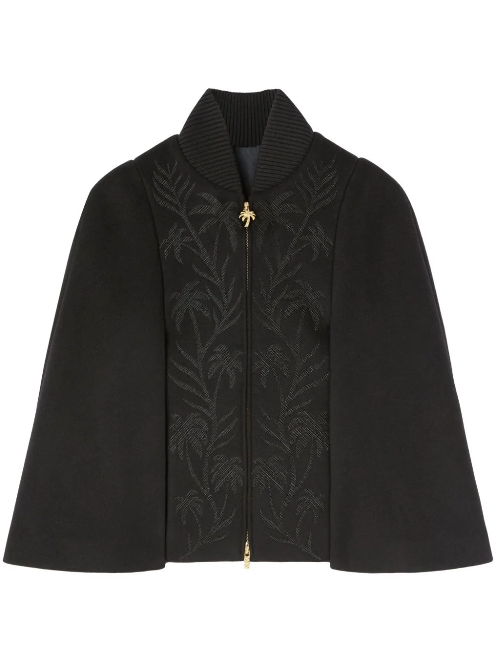 palm-embroidered zip-up cape