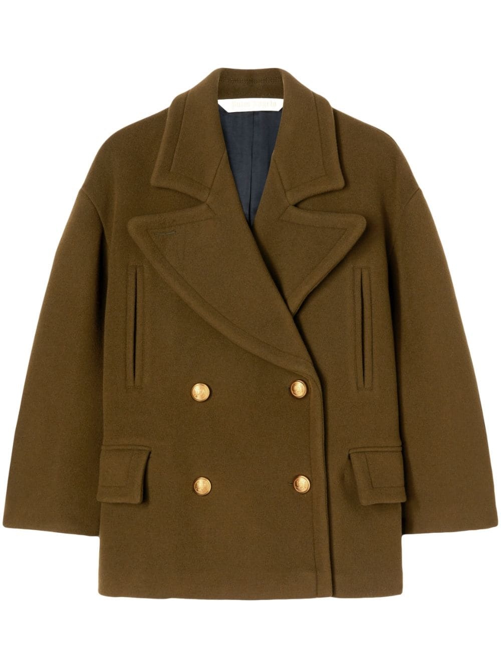 palm-embroidery double-breasted coat Made from a virgin wool blend, this green coat by Palm Angels reflects the brand's aesthetic with an oversize silhouette and the iconic palm motif embroidery. Featuring expressive lapels, it benefits from four pockets at the front. Highlights - Fern green - Virgin wool blend - Embroidered motif - Notched lapels - Two chest welt pockets - Two front flap pockets - Drop shoulder - Long sleeves - Straight hem Made in Italy Composition Virgin Wool 75%, Polyamide 25% Lining: Cupro 100% SIZE & FIT FittingInformation Designed for an oversized fit, offering additional room throughout This piece fits true to size – take your usual size