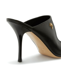 95mm Palm-detail sandals Palm Angels embraces a minimal aesthetic with these leather mules from the AW23 collection. Crafted in Italy, the pair comes with 95mm stiletto heels and is simply detailed with a mini Palm motif for recognisable touch. Highlights - Black - Leather - Grained texture - Mini logo tag - Open toe - Square toe - Branded leather insole - High stiletto heel - Slip-on style Made in Italy Composition Sole: Leather 100% Outer: Ovine Leather (top grain) 100% Lining: Leather 100%