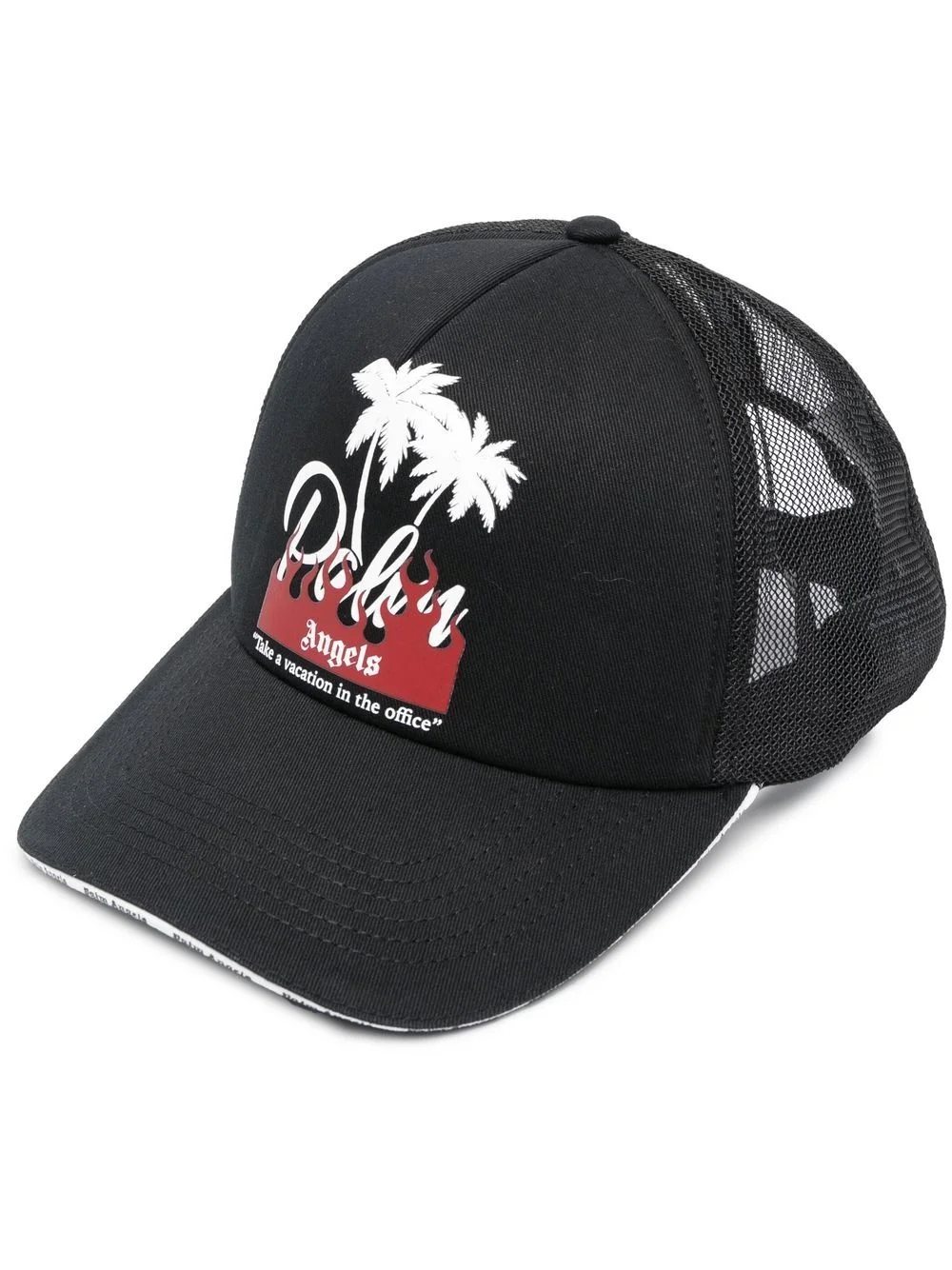 palm-print mesh-panel cap Palm Angels' LA-inspired laidback style is illustrated in this cap from the SS23 collection. The accessory is adorned with the brand's signature palm print for an instantly recognisable look. Imported Composition Polyurethane 100%, Cotton 60%, Polyester 40% Washing instructions Dry Clean Only