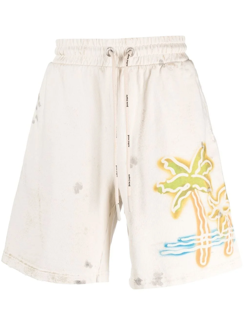 palm-print track shorts Adorned with the signature palm tree print in a bright multicolour design, these track shorts are presented by Palm Angels for SS23. The logo print provides a finishing branded touch to the cotton pair. Made in Italy Composition Cotton 100% SIZE & FIT Model measurements Height 6 ft 1 in(1.85 m) Bust/Chest 35.82 in(91 cm) Hips 37.79 in(96 cm) Waist 29.13 in(74 cm) Measurement FRONT RISE 13.38 in(34 cm) WAIST 26.77 in(68 cm) FittingInformation This piece fits true to size. We recommend you get your regular size Designed for a slim fit at the waist and loose over the leg Made with a mid-weight fabric Washing instructions Hand Wash