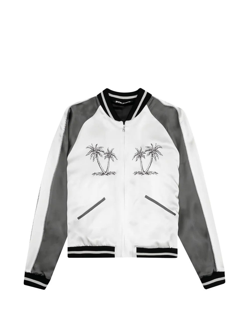 palm tree embroidered jacket Highlights - Grey/black - Ribbed trim - Zip fastening - Palm tree embroidery - Striped detailing - Raglan sleeves Made in Italy Composition Fabric 100% Washing instructions Read Manufacturer Guidelines