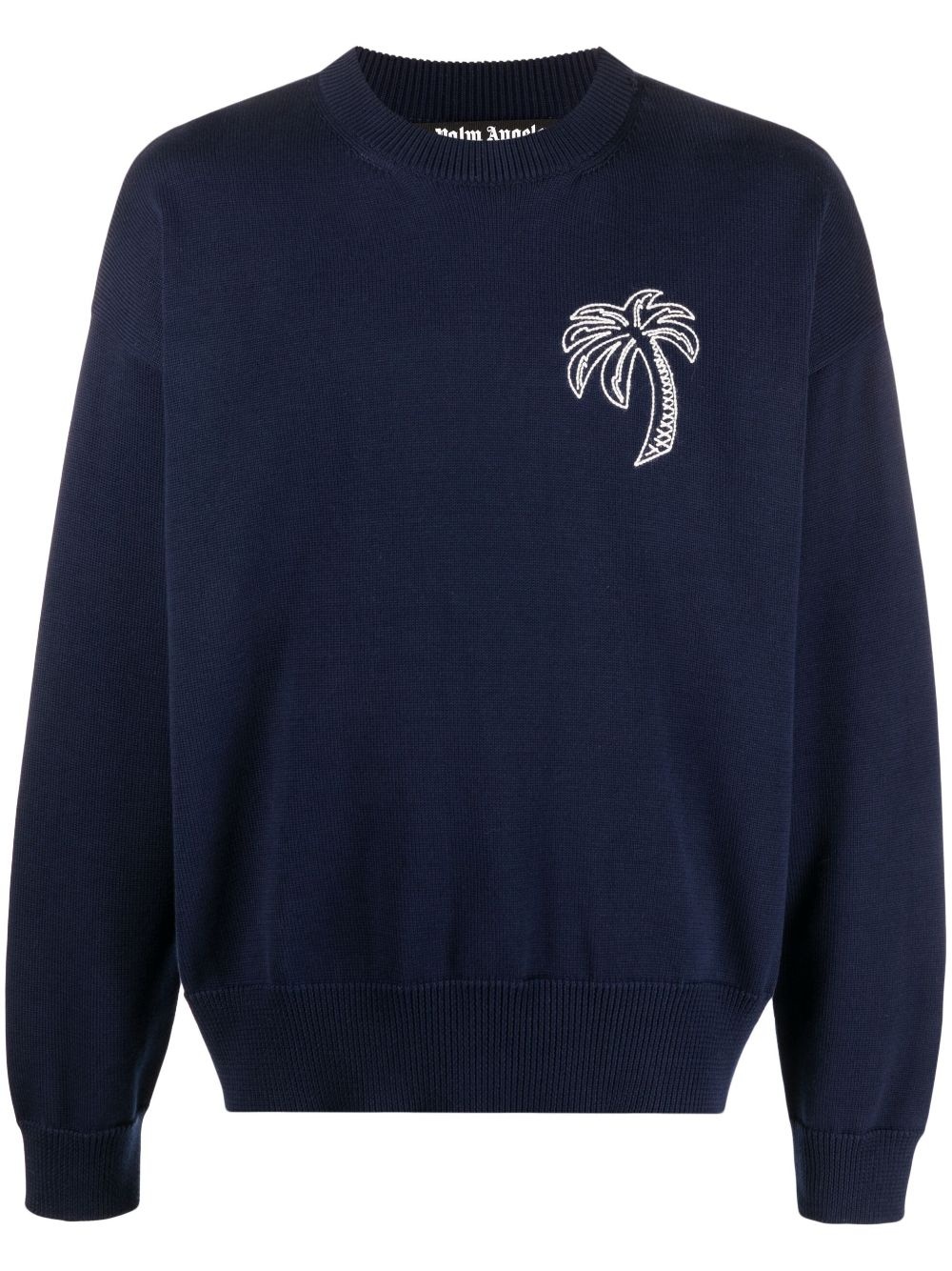 palm tree jumper Inspired by American street culture, Palm Angels tells a story through its garments by making use of timeless colours and special details. Crafted from a wool blend, this jumper is detailed with a palm tree logo embroidered at the chest- creating the perfect blend between luxury and streetwear. Made in Italy Composition Cotton 100%, Polyester 100%, Acrylic 50%, Wool 50% SIZE & FIT Model measurements Height 6 ft 2 in(1.88 m) Bust/Chest 37.79 in(96 cm) Hips 36.22 in(92 cm) Waist 31.1 in(79 cm) FittingInformation This piece fits true to size. We recommend you get your regular size Cut for a loose fit Made with a mid-weight fabric Washing instructions Hand Wash