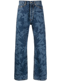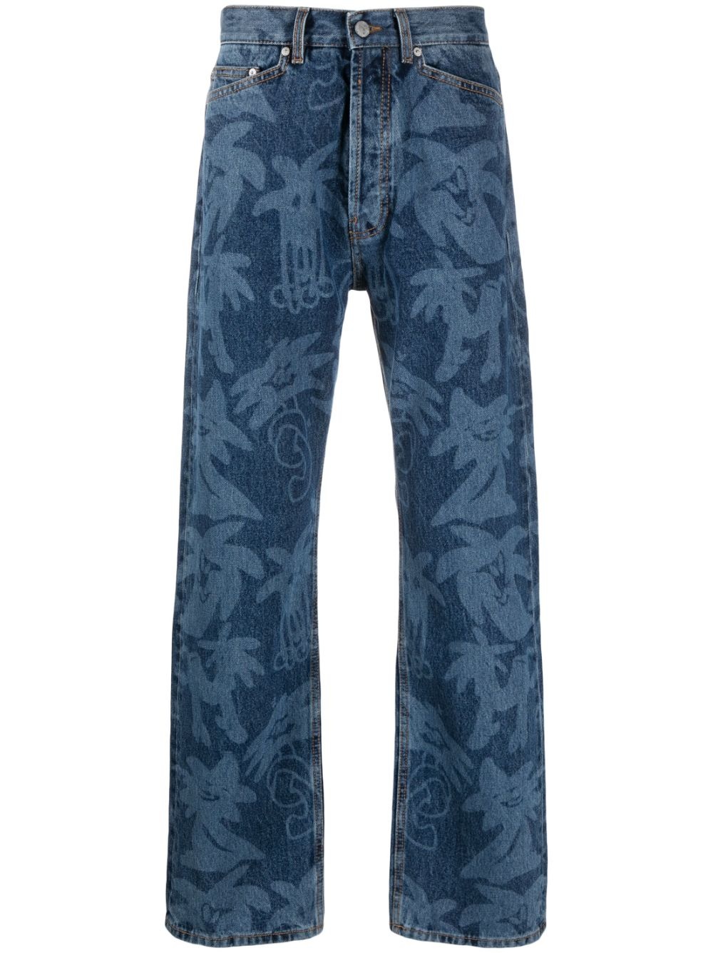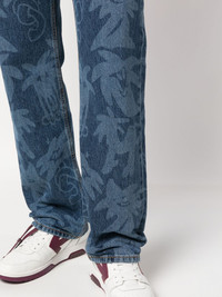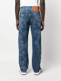 Palmity palm tree-print jeans Laser-printed with palm trees all over, these jeans showcase Palm Angels' penchant for Los Angeles-themed motifs. They're crafted from mid-blue denim with classic details – note the five-pocket design and branded logo patch. Highlights - Blue - Cotton - Denim - Palm tree print - Belt loops - Logo patch to the rear - Front button fastening - Classic five pockets - When buying this unisex item, keep in mind that it is graded in standard men's sizing. Made in Italy Composition Lining: Polyester 65%, Cotton 35% Outer: Cotton 100% SIZE & FIT Model measurements Height 5 ft 11 in(1.8 m) Bust/Chest 33.07 in(84 cm) Hips 37.4 in(95 cm) Waist 25.19 in(64 cm) FittingInformation This piece is unisex and is designed with a straight-cut over the leg whether you usually select women's or men's sizes Sturdy and hard-wearing, this denim piece offers no stretch Washing instructions Machine Wash