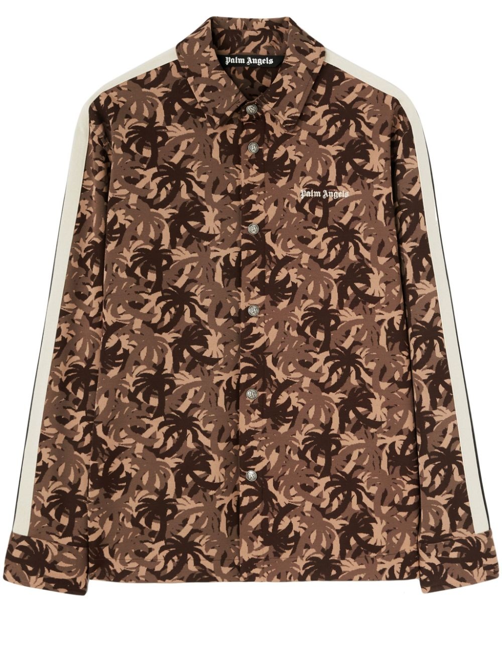 Palms camouflage-pattern shirt Highlights - Brown - Camouflage pattern - Palm tree print - Logo print at the chest - Side stripe detailing - Classic collar - Front button fastening - Long sleeves - Buttoned cuffs - Straight hem Made in Italy Composition Polyester 100%