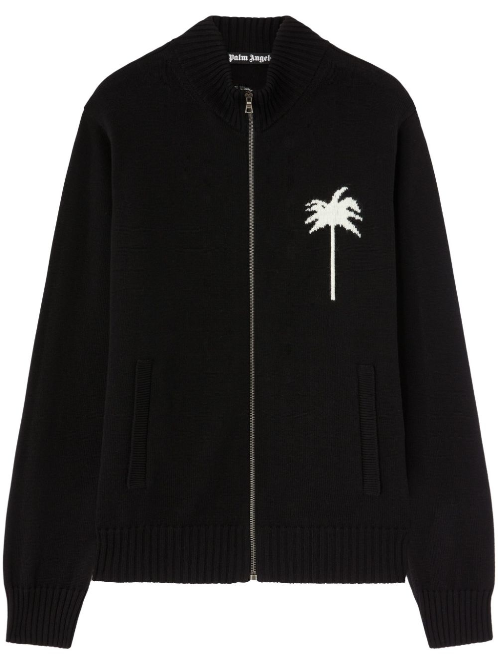 palms-knit cardigan Highlights - Black - Front zip fastening - Patterned intarsia knit - Two front welt pockets - Ribbed cuffs and hem Imported Composition Acrylic 100%, Cotton 60%, Merino 40%