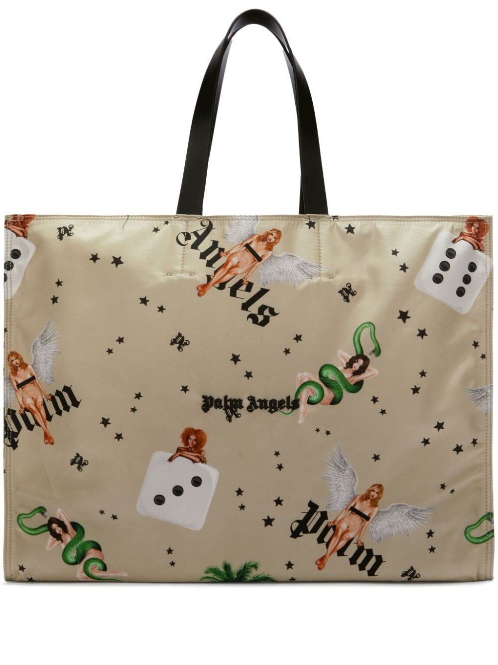 pin-up tote bag Highlights - Light beige - Open top - Two flat top handles - Logo print embellishment - Star print Made in Italy Composition Outer: Polyamide 100%, Calf Leather 100% Lining: Cotton 100%