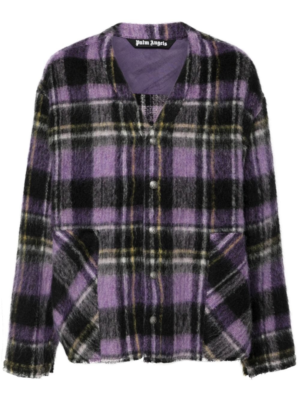 plaid-check cardigan Highlights - Violet purple/multicolour - Virgin wool blend - Knitted construction - Brushed effect - Plaid check pattern - Front button fastening - Logo-engraved buttons - V-neck - Drop shoulder - Long sleeves - Buttoned cuffs - Two side slit pockets - Logo print to the rear - Partial lining - Straight hem - Raw-cut hem Made in Italy Composition Outer: Virgin Wool 60%, Alpaca 14%, Mohair 14%, Polyamide 12% Lining: Cupro 100% SIZE & FIT Model measurements Height 6 ft 2 in(1.87 m) Bust/Chest 38.18 in(97 cm) Hips 36.61 in(93 cm) Waist 29.13 in(74 cm) FittingInformation Designed to be unstructured, offering a loose fit throughout Made from a midweight non-stretch fabric