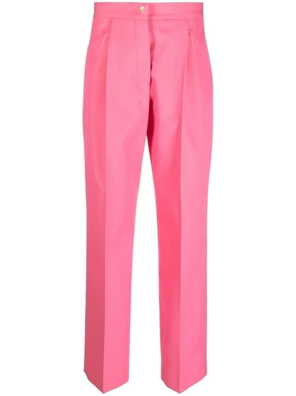 pressed-crease tailored wide-leg trousers Palm Angels' trousers are punctuated by their vibrant hue. This wide-leg iteration sits high on the waist and is subtly defined by pressed creases. Made in Italy Composition Outer: Cotton 70%, Polyester 30% Lining: Cotton 100%