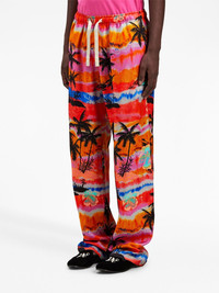 psychedelic-palms wide-leg trousers Palm Angels showcases its penchant for Los Angeles-inspired motifs through the recurring use of the Palm Tree motif. A prime example, these wide-leg trousers are decorated with the graphic in a repeated iteration which contrasts against the sunset-hued backdrop. Highlights - Fuchsia pink - Multicolour - Cotton - Elasticated drawstring waistband - Two rear welt pockets - Wide leg Made in Italy Composition Lining: Cotton 100% Outer: Lyocell 100%