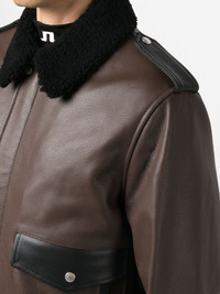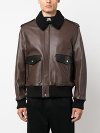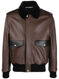 Racing Aviator leather jacket Palm Angels combines inspirations with the Racing Aviator jacket, as the name suggests. Crafted from leather in Italy, it is form after classic aviator styles and features a striking racing-inspired graphic-print to the rear. Highlights - Brown - Calf leather - Graphic print to the rear - Two front flap pockets - Concealed front fastening - Faux-shearling trim - Epaulettes - Long sleeves - Ribbed cuffs - Straight hem - When buying this unisex item, keep in mind that it is graded in standard men's sizing Made in Italy Composition Outer: Calf Leather 100% Lining: Cupro 100%, Cotton 100% Washing instructions Specialist Cleaning