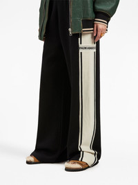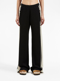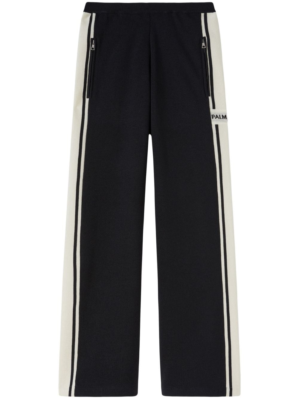 Racing knitted track pants Italian brand PALM ANGELS decorates these knitted track pants with a contrasting side stripe. The brand's logo appears on the side of the leg for a distinctive branding note. Highlights - Black/butter yellow - Merino wool - Wide leg - Knitted construction - Side stripe detailing - Mid-rise - Elasticated waistband - Two side zip-fastening pockets Made in Italy Composition Merino 100% SIZE & FIT FittingInformation Designed to be unstructured, offering a loose fit throughout This piece fits true to size – take your usual size