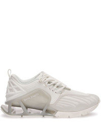 Racing Palm Web sneakers Drawing inspiration from sports footwear, these sneakers from Palm Angels offer a futuristic twist to a classic style. Mesh panels at the heel mimic a spider's web, while side lace-up fastenings and transparent inserts project the forward-thinking approach of the brand. Highlights - White/grey - Embossed logo to the side - Mesh panelling - Round toe - Side lace-up fastening - Pull-tab at the heel - Flat rubber sole Imported Composition Sole: Rubber 100% Outer: Cotton 80%, Rubber 20% Lining: Fabric 100%
