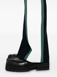 Racing trousers Highlights - Midnight blue - Knitted construction - Ribbed waistband - Jacquard logo motif Made in Italy Composition Viscose 70%, Polyester 30% SIZE & FIT Model measurements Height 5 ft 10 in(1.78 m) Bust/Chest 33.85 in(86 cm) Hips 36.61 in(93 cm) Waist 26.77 in(68 cm) FittingInformation Designed with a flared hem, these trousers allow for a close fit at the waist with a slim fit over the leg and widening towards the hem The elasticated waist allows for a comfortable fit Made with a midweight knit, this piece offers some stretch Washing instructions Machine Wash