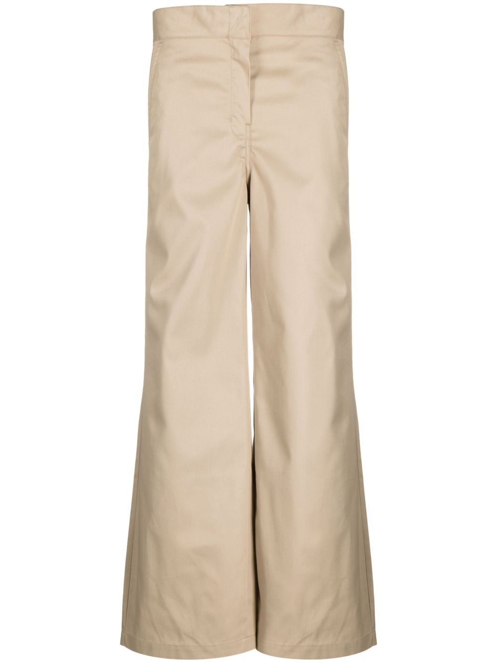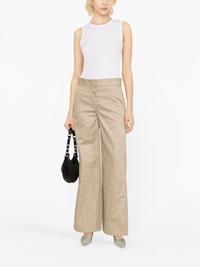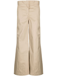 reversed waistband chino pants beige reversible high waist tonal stitching internal logo stamp concealed front zip fastening straight hem two rear welt pockets Made in Italy Composition Outer: Polyester 65%, Cotton 35% Lining: Polyester 65%, Cotton 35% SIZE & FIT Model measurements Height 5 ft 9 in(1.75 m) Bust/Chest 31.88 in(81 cm) Hips 33.85 in(86 cm) Waist 24.01 in(61 cm) Measurement INSIDE LEG 30.7 in(78 cm) HIPS 35.82 in(91 cm) WAIST 32.28 in(82 cm) FittingInformation Designed with a wide-leg cut, these trousers allow for a close fit at the waist and offer a loose and roomy fit over the leg Made from a midweight non-stretch fabric This piece fits true to size – take your usual size