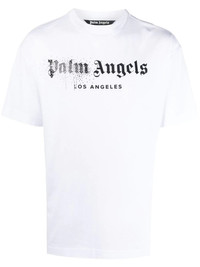 rhinestone sprayed logo-print T-shirt Renowned for its streetwear aesthetic, Palm Angels continues to imbue each item with its signature off-duty edge. True to the label’s design style, this T-shirt features a contrasting logo print, whilst rhinestone detailing completes the piece. Imported Composition Cotton 100%, glass 100% SIZE & FIT Model measurements Height 6 ft 2 in(1.87 m) Bust/Chest 35.82 in(91 cm) Hips 35.82 in(91 cm) Waist 29.52 in(75 cm) Measurement CHEST 42 in(106.7 cm) SLEEVE LENGTH 7.99 in(20.3 cm) LENGTH 27.51 in(69.9 cm) FittingInformation This piece fits true to size. We recommend you get your regular size Cut for a relaxed fit Made with a mid-weight fabric Washing instructions Hand Wash