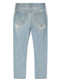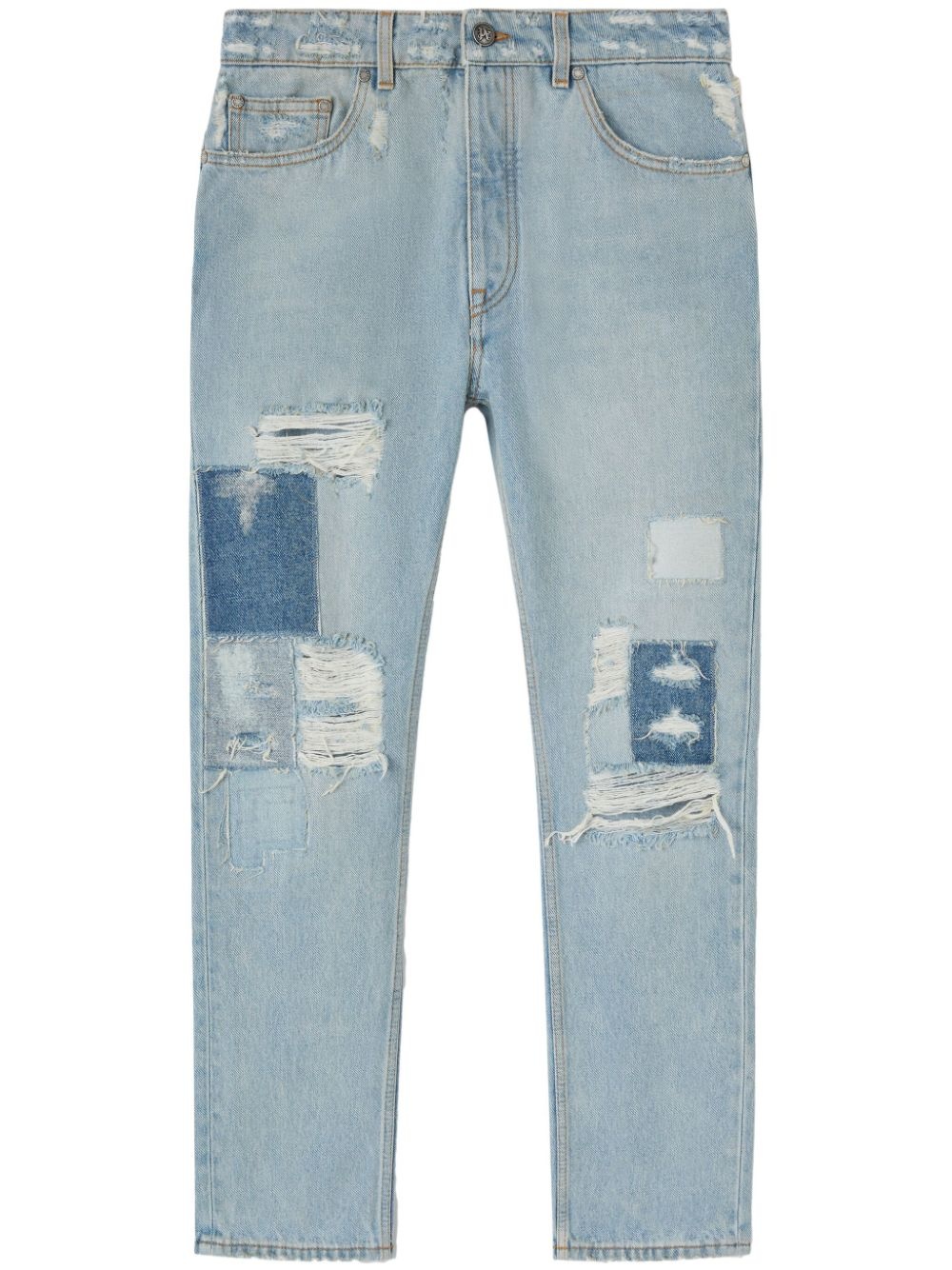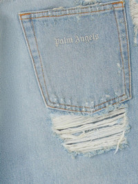 ripped straight-leg jeans Inspired by American street culture, Palm Angels tells a story through its garments by making use of bold details. These straight-cut jeans boast a laid-back fit elevated with edgy ripped and patchwork details. Highlights - Light blue - Cotton - Patchwork detailing - Ripped detailing - Belt loops - Front button fastening - Classic five pockets - Straight leg Made in Italy Composition Outer: Cotton 100%, Polyester 100% Lining: Polyester 65%, Cotton 35% Washing instructions Read Manufacturer Guidelines