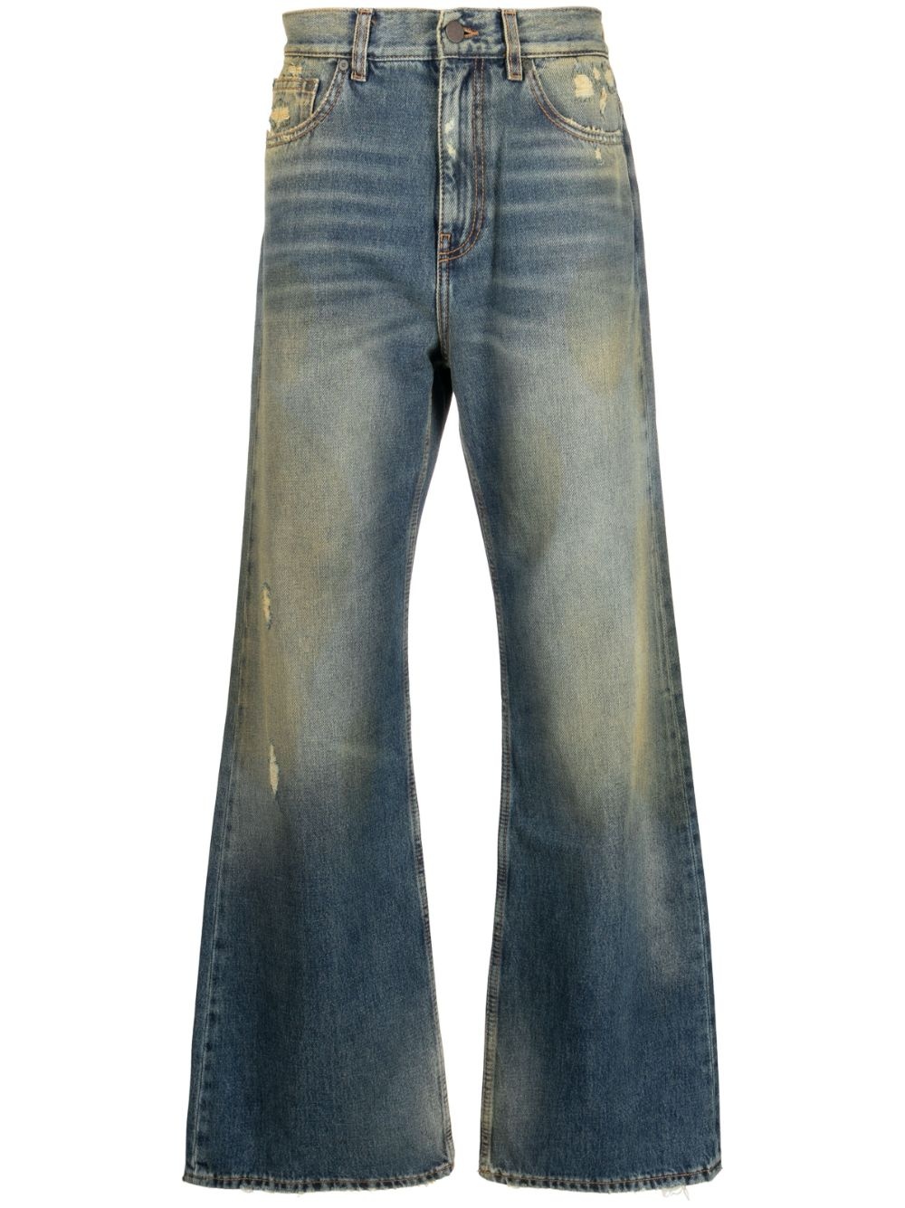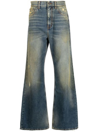 ripped straight-leg jeans Inspired by the skate community and laid-back vibe of Los Angeles, Palm Angels imbues these jeans with its characteristic casual style. They are crafted from pure cotton with a faded effect and decorated with ripped detailing. Highlights - Light-blue wash - Cotton denim - Straight leg - Faded effect - Ripped detailing - Logo patch to the rear - Mid-rise - Belt loops - Front button fastening - Classic five pockets Made in Italy Composition Outer: Cotton 100%, Calf Leather 100% Lining: Polyester 65%, Cotton 35% SIZE & FIT Model measurements Height 6 ft 2 in(1.87 m) Bust/Chest 36.22 in(92 cm) Hips 37 in(94 cm) Waist 27.95 in(71 cm) FittingInformation Designed with a flared hem, these jeans offer a slim fit over the leg that widens towards the hem Sturdy and hard-wearing, this denim piece offers no stretch This piece fits true to size – take your usual size Washing instructions Machine Wash