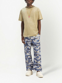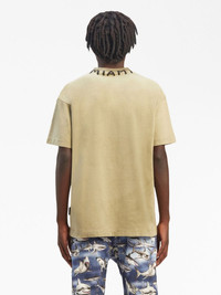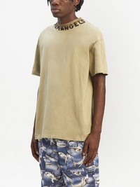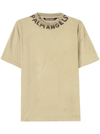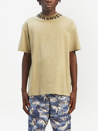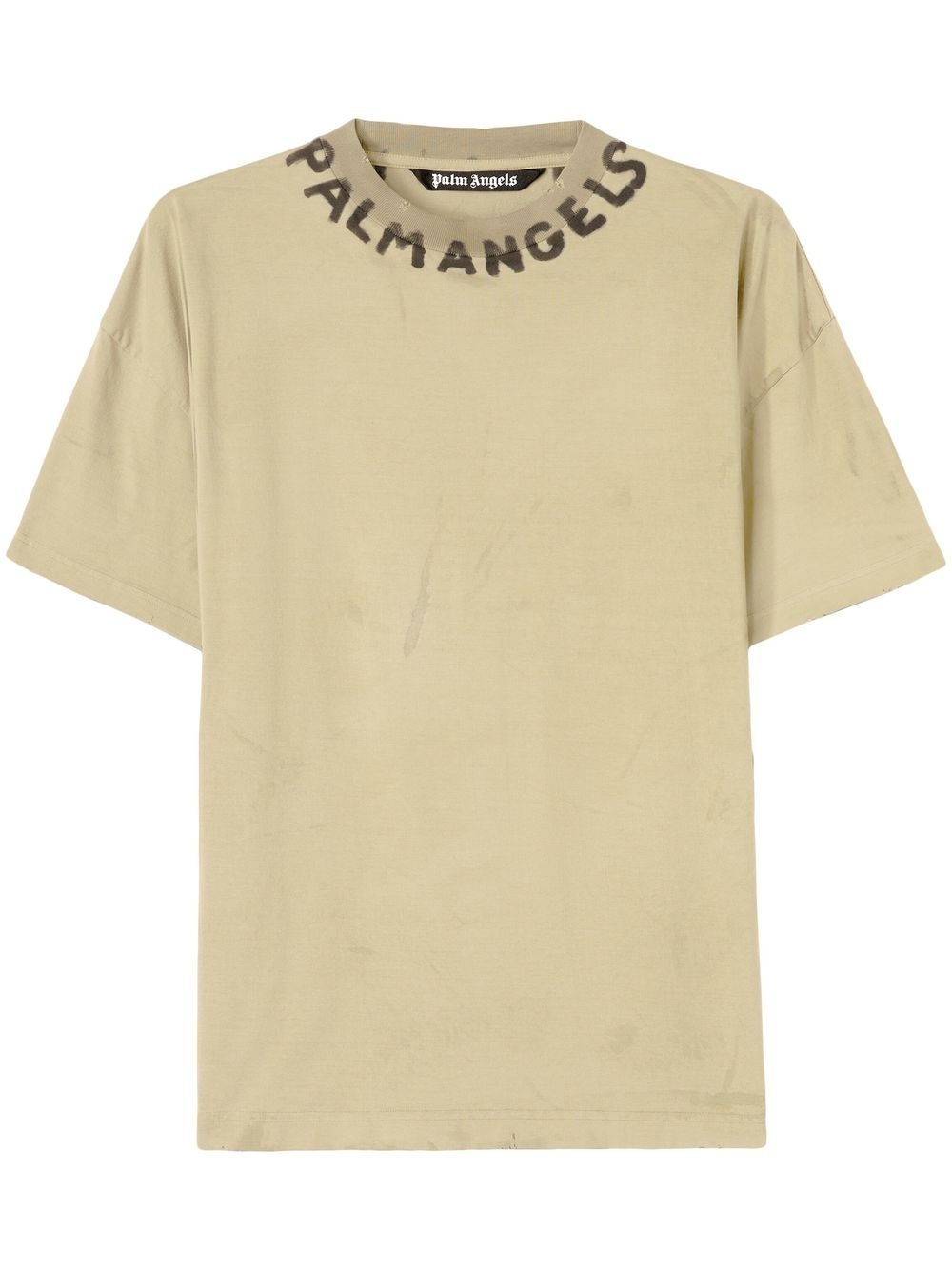 Seasonal logo T-shirt Palm angels are known for their laid-back style which is reflected in this Seasonal logo T-shirt that comes in a distressed sand hue for SS23. The brand's logo boldly stands along the neckline in a hand-painted style font. A relaxed silhouette completes the look. Made in Italy Composition Cotton 100%, Polyester 100%