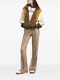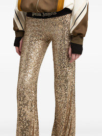 sequin-design flared trousers Highlights - Gold-tone - Stretch-design - Sequin design - Flared design - Elasticated logo waistband Made in Italy Composition Polyamide 92%, Elastane 8%