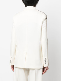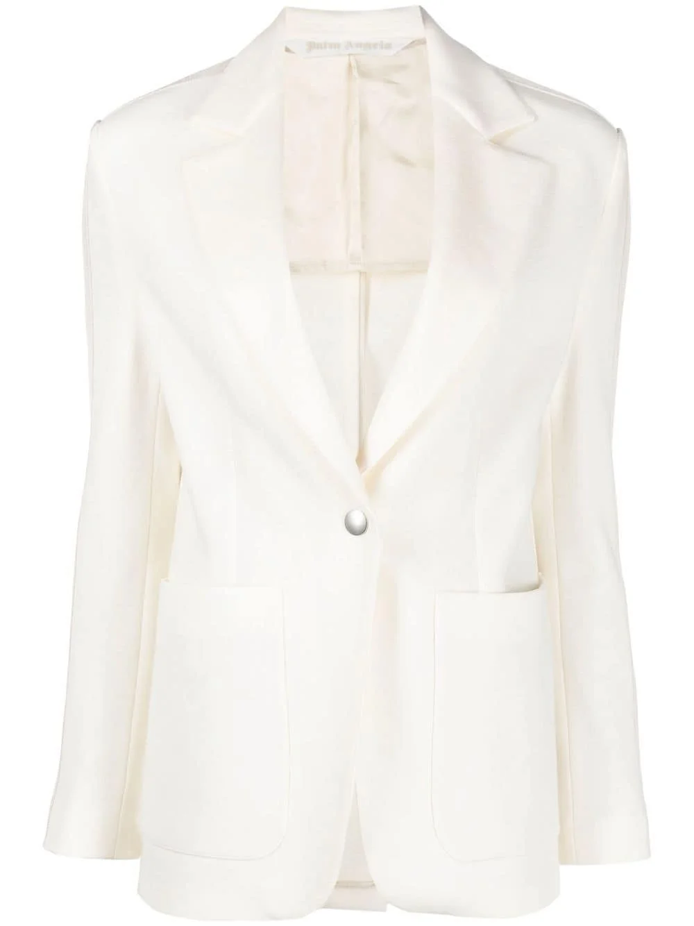 side-stripe notched-lapels blazer Palm Angels' blazer is inspired by the brand's streetwear aesthetic - the stripes along each sleeve nod to to track jackets. This off-white iteration is tailored in a smart single-breasted silhouette. Made in Italy Composition Lining: Viscose 100% Outer: Cotton 52%, Polyester 48% SIZE & FIT Model measurements Height 5 ft 10 in(1.78 m) Bust/Chest 33.07 in(84 cm) Hips 35.82 in(91 cm) Waist 25.98 in(66 cm) FittingInformation This piece fits true to size. We recommend you get your regular size Cut for a loose fit Made with a mid-weight non-stretch fabric Washing instructions Machine Wash