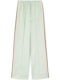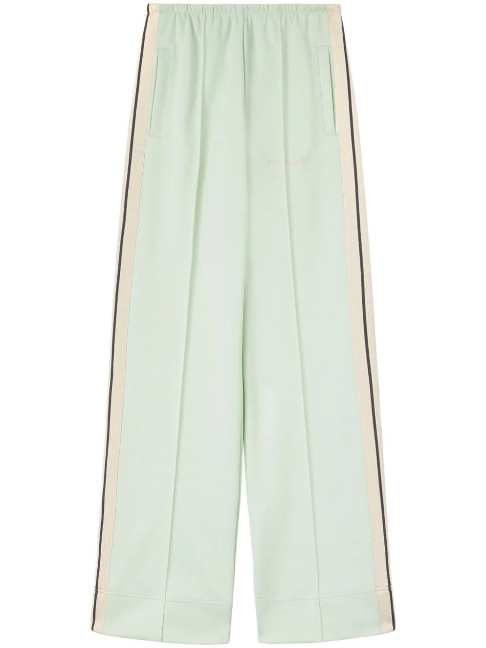 side-stripe track pants These mint-green track pants from Palm Angels ooze retro appeal with their contrasting stripes that adorn the sides in a contrasting off-white hue. They're cut from cotton jersey to a slouchy wide leg and floor-pooling hem. Highlights - Mint green/off-white - Cotton - Side stripe detailing - Embroidered logo to the front - Elasticated waistband - Wide leg - Raised seam detail - Floor-length Made in Italy Composition Lining: Cotton 100% Outer: Polyester 100% Washing instructions Read Manufacturer Guidelines