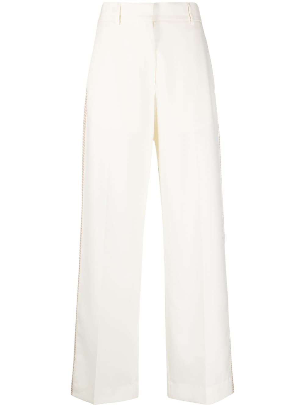 side-stripe trousers Palm Angels channels a laid-back aesthetic for SS23, as evidenced by the softly tailored silhouette of these trousers. They're traced with knitted cotton side stripes, emphasising the brand's retro sportswear influences. Made in Italy Composition Cotton 100%, Polyester 55%, Virgin Wool 45% SIZE & FIT Model measurements Height 5 ft 10 in(1.79 m) Bust/Chest 31.1 in(79 cm) Hips 35.03 in(89 cm) Waist 24.01 in(61 cm) Washing instructions Dry Clean Only