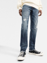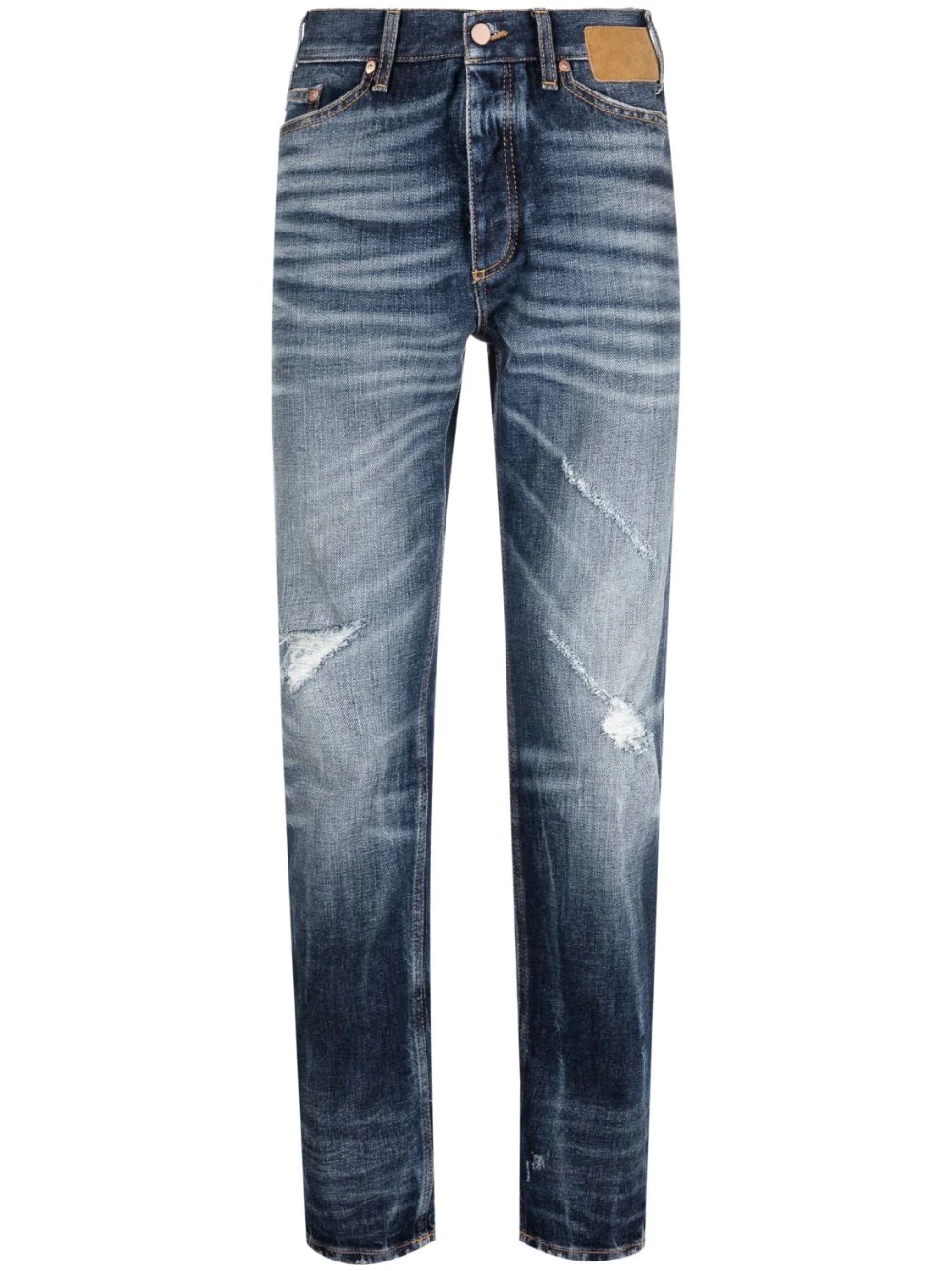 slim-fit distressed straight-leg jeans