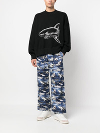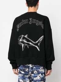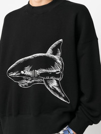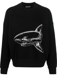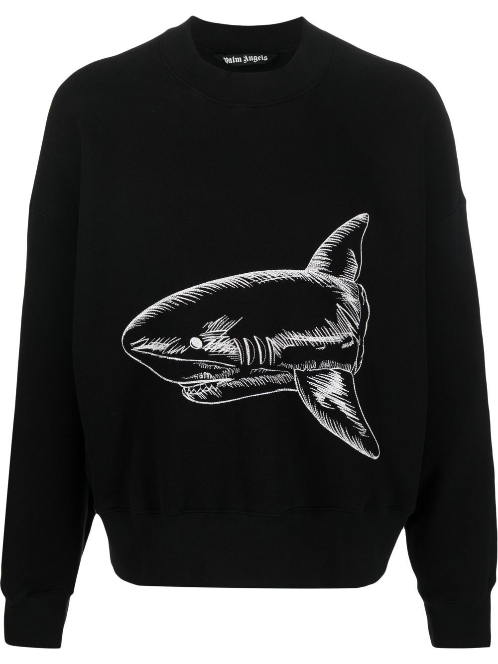 Split Shark crew-neck sweatshirt Named 'Welcome To Miami', Palm Angels' SS23 collection presents pieces inspired by the beaches of Florida. This cotton T-shirt is adorned with the brand's 'Broken Shark' embroidery showcasing the theme. Highlights - Black/white - Organic cotton - Embroidered motif - Logo print to the rear - Crew neck - Long sleeves - Ribbed trim Made in Italy Composition Cotton 100%, Polyester 66%, Viscose 34% SIZE & FIT Model measurements Height 6 ft 1 in(1.85 m) Bust/Chest 35.82 in(91 cm) Hips 37.79 in(96 cm) Waist 29.13 in(74 cm) FittingInformation This piece fits true to size. We recommend you get your regular size Cut for a loose fit Made with a mid-weight fabric Washing instructions Machine Wash