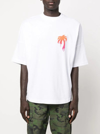 spray-effect logo-print T-shirt white fuchsia pink orange cotton palm tree print logo print to the rear spray-paint effect crew neck short sleeves straight hem Imported Composition Cotton 100% Washing instructions Hand Wash