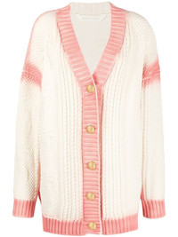 spray paint-effect logo-print cardigan Palm Angels' cardigan is punctuated with the brand's signature palm tree motif at the rear in an uplifting pink hue. The spray-paint effect speaks to the brand's streetwear DNA. Made in Italy Composition Polyester 100%, Cotton 62%, Polyamide 38%