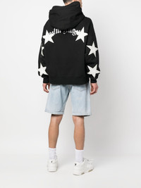 star-patch cotton hoodie Palm Angels' hoodie is spun from black cotton into a soft jersey fleece for comfortable appeal. On the back, contrasting white stars frame the brand's printed logo, while a double-constructed drawstring hood nods to the brand's playful design approach. Highlights - Black/white - Cotton - Jersey fleece - Logo print to the rear - Star patch detail - Drawstring hood - Front pouch pocket - Drop shoulder - Long sleeves - Ribbed cuffs and hem Made in Italy Composition Cotton 100%, Polyester 60%, Polyurethane 40% SIZE & FIT Model measurements Height 6 ft 1 in(1.85 m) Bust/Chest 35.82 in(91 cm) Hips 37.79 in(96 cm) Waist 29.13 in(74 cm) FittingInformation Designed to be unstructured, offering a loose fit throughout Made from a midweight non-stretch fabric, this piece offers minimal elasticity when worn This piece fits true to size – take your usual size Washing instructions Hand Wash
