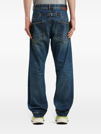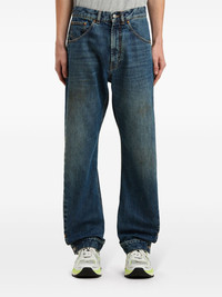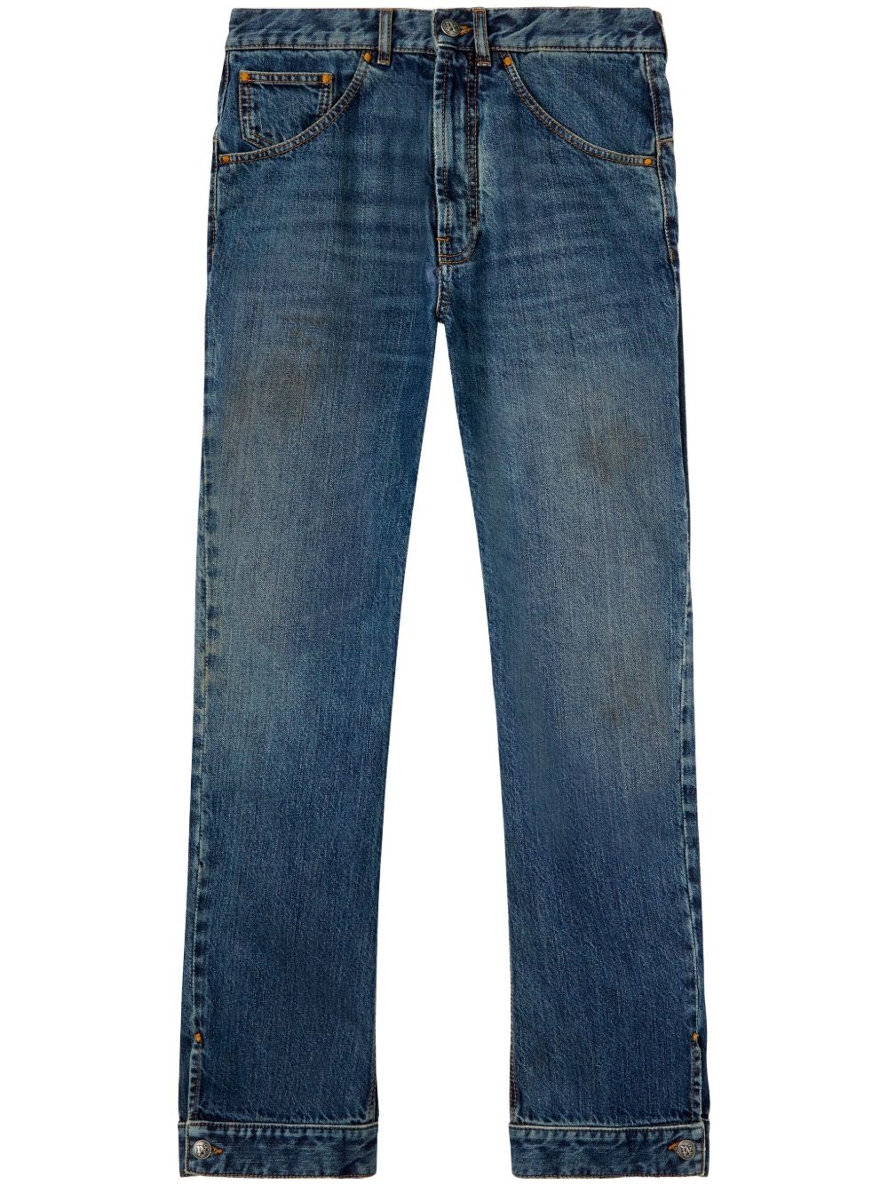straight-leg jeans Highlights - Blue - Front button and zip fastening - Classic five pockets - Belt loops - Open cuff design Made in Italy Composition Outer: Cotton 100%, Leather 100% Lining: Cotton 100%