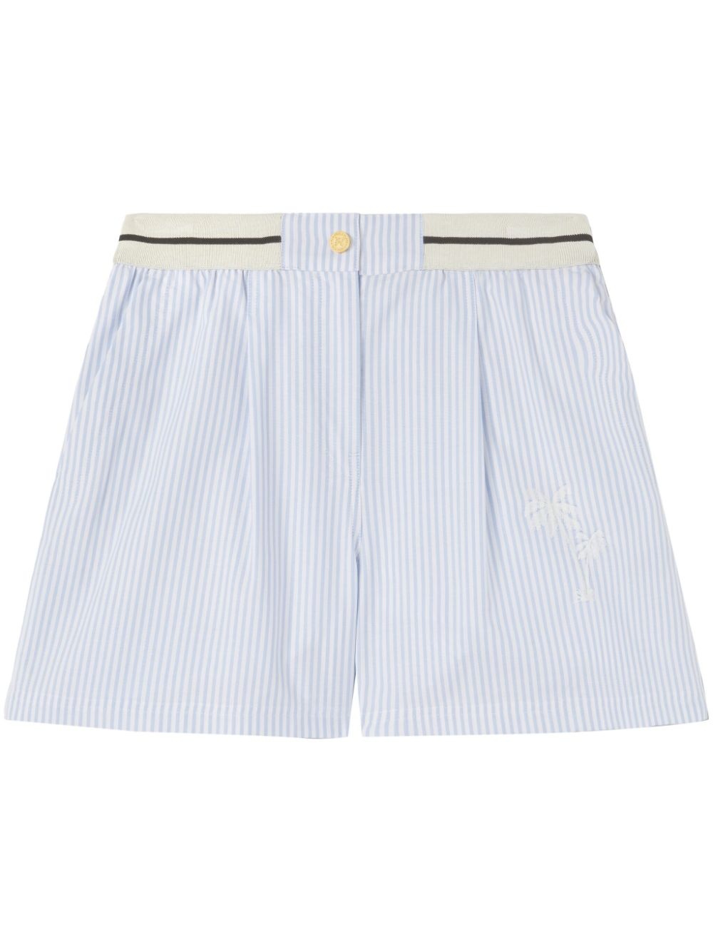 Palms striped boxer shorts Highlights - Light blue - Cotton - Pleat detailing - Vertical stripe pattern - Elasticated waistband - Front button fastening - Two side slit pockets - Above-knee length Made in Italy Composition Outer: Cotton 100%, Polyester 100% Lining: Cotton 100% SIZE & FIT Measurement FRONT RISE 13.38 in(34 cm) HIPS 40.94 in(104 cm) WAIST 27.55 in(70 cm) Washing instructions Read Manufacturer Guidelines