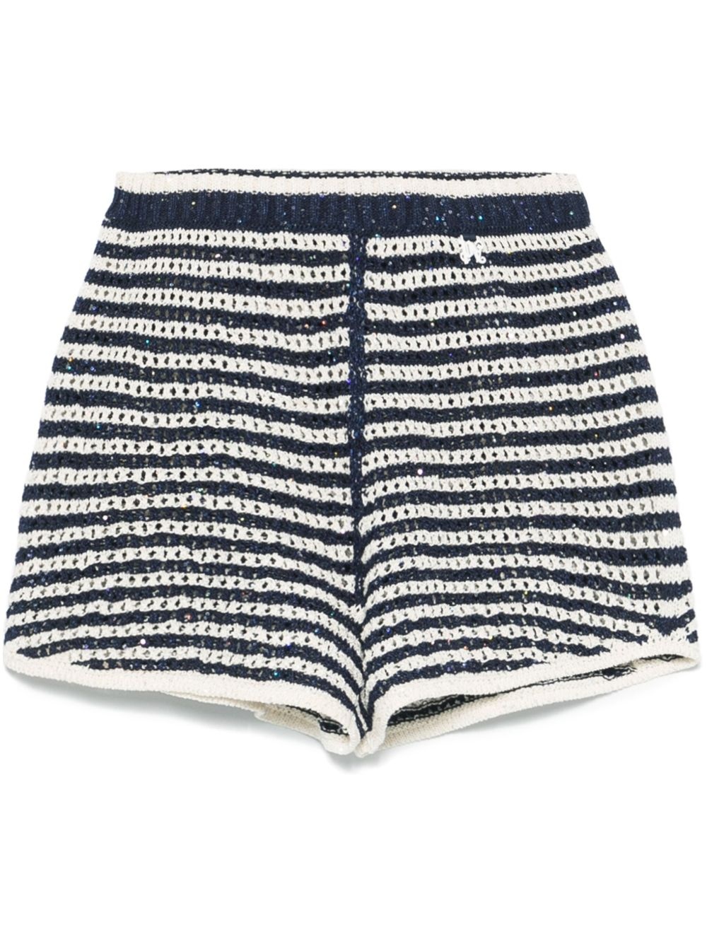 striped knit shorts Highlights - Midnight blue - Elasticated waistband - Sequin embellishment Made in Italy Composition Brass 100%, Polyester 46%, Cotton 36%, Viscose 16%, Other fibres 2% SIZE & FIT Model measurements Height 5 ft 10 in(1.78 m) Bust/Chest 33.85 in(86 cm) Hips 36.61 in(93 cm) Waist 26.77 in(68 cm) FittingInformation Designed for a close fit throughout The elasticated waist allows for a comfortable fit Made with a midweight knit, this piece offers some stretch