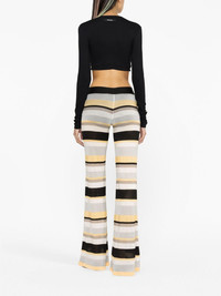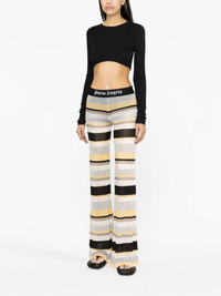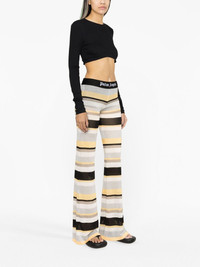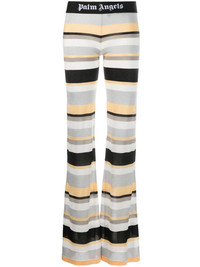 striped lurex-knit trousers A nod to 70s styling, these Palm Angels trousers boast a lightweight knit construction that falls to a flared silhouette. Bold stripes complement the pair's groovy appeal, enhanced by sparkling lurex detailing. Highlights - Grey/white - Yellow - Black - Knitted construction - Lurex detailing - Horizontal stripe pattern - Elasticated logo waistband - Flared design Made in Italy Composition Viscose 68%, Acetate 25%, Polyester 4%, Polyamide 3% SIZE & FIT Model measurements Height 5 ft 10 in(1.77 m) Bust/Chest 32.67 in(83 cm) Hips 35.43 in(90 cm) Waist 23.62 in(60 cm) FittingInformation Made with a lightweight knit, this piece offers some stretch This piece fits true to size – take your usual size Washing instructions Dry Clean Only