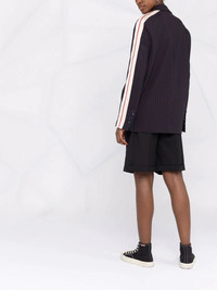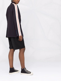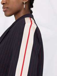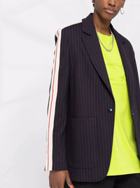 striped single-breasted blazer A prime example of Palm Angels' laid-back aesthetic, this single-breasted blazer merges a classic silhouette with sporty-inspired details. Boasting an all-over pinstripe pattern and timeless notched lapels, this piece is detailed with sportswear-inspired stripes at the sleeves. Made in Italy Composition Outer: Viscose 65%, Polyamide 30%, Spandex/Elastane 5% Lining: Viscose 100% SIZE & FIT Model measurements Height 5 ft 10 in(1.77 m) Bust/Chest 29.92 in(76 cm) Hips 34.25 in(87 cm) Waist 23.62 in(60 cm) FittingInformation This piece fits true to size. We recommend you get your regular size Cut for a loose fit Made with a mid-weight fabric Washing instructions Machine Wash