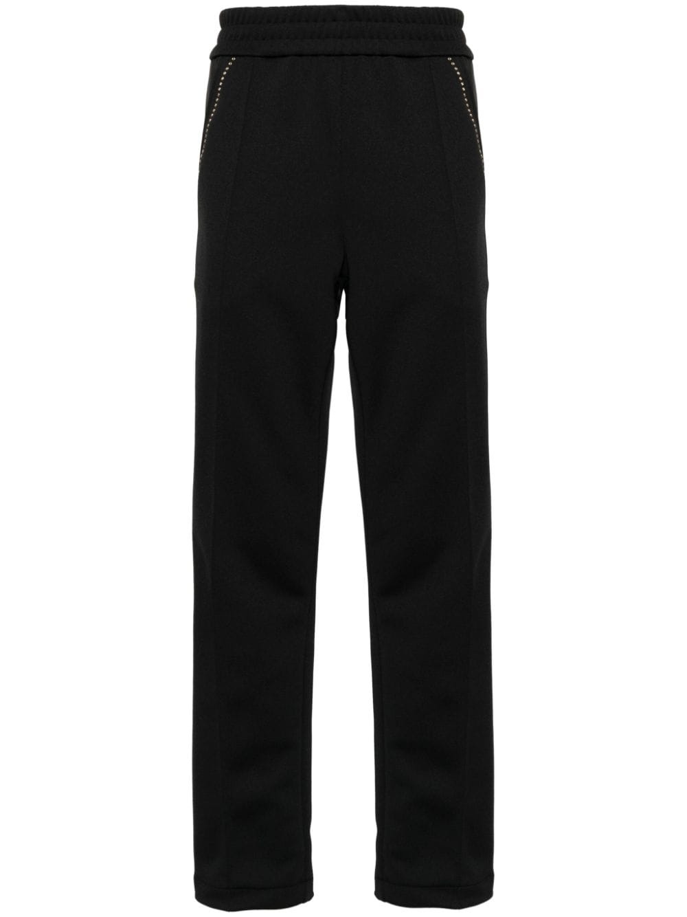 monogram-appliqu� track pants Highlights - Black - Jersey texture - Stud embellishment - Crystal embellishment - Mid-rise - Elasticated waistband - Straight leg - Two side slit pockets Made in Italy Composition Outer: glass 100%, Polyester 100% Lining: Polyester 100% SIZE & FIT Model measurements Height 6 ft 1 in(1.85 m) Bust/Chest 36.22 in(92 cm) Hips 36.22 in(92 cm) Waist 27.55 in(70 cm) Measurement FRONT RISE 12.2 in(31 cm) INSIDE LEG 29.92 in(76 cm) WAIST 27.55 in(70 cm) FittingInformation Designed for a relaxed straight leg, allowing a comfortable and loose fit over the leg The elasticated waist allows for a comfortable fit Made from a midweight non-stretch fabric, this piece offers minimal elasticity when worn This piece fits true to size – take your usual size Washing instructions Hand Wash