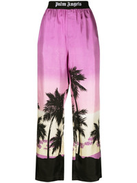 Sunset pajama pants The city of Los Angeles is a great source of inspiration for Palm Angels. That inspiration is on full display with the Sunset pajama pants as the design is defined by a palm tree graphic print throughout while the logo-printed waistband provides a distinctly branded look. Made in Italy Composition Viscose 100%, Polyamide 67%, Polyester 23%, Elastane 10%