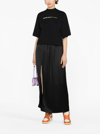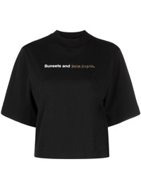 Sunsets-print cotton T-shirt Emblazoned with a slogan that reads 'Sunsets and Palm Angels' in white and shimmering gold lettering, this black cotton T-shirt reflects the coastal, carefree Californian spirit that inspires the Italian fashion label. Highlights - Black - Cotton - Slogan print to the front - Mock neck - Short sleeves - Straight hem Imported Composition Cotton 100% SIZE & FIT Measurement SLEEVE LENGTH 11.41 in(29 cm) Shoulder Width 16.14 in(41 cm) LENGTH 20.07 in(51 cm) BUST 37.79 in(96 cm) Washing instructions Hand Wash