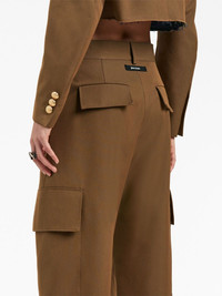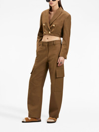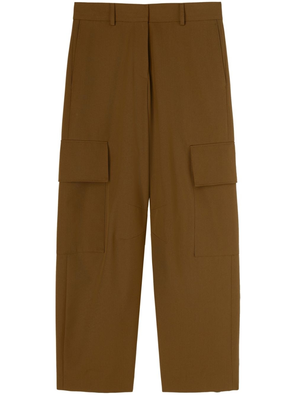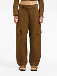 tapered cargo trousers Offering comfort and style, these cargo trousers from PALM ANGELS have a relaxed, tapered-leg fit. The pair is presented in an olive-brown hue and features two side cargo pockets, which lend a utilitarian finish. Highlights - Olive brown - Cotton - Tapered leg - Mid-rise - Belt loops - Concealed front fastening - Two side slit pockets - Two side cargo pockets - Two rear flap pockets Made in Italy Composition Lining: Cotton 100% Outer: Cotton 70%, Polyester 30%