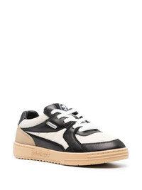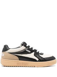 University panelled leather sneakers The Palm Angels University sneakers take inspiration from classic American college styles. Shaped to a low-top silhouette, it has quilted panelling and a gel insert embellishing the outer sidewall. Branded detailing appears at the tongue and heel counter for an instantly recognisable look. Highlights - White/black - Light brown - Calf leather - Panelled design - Logo patch at the tongue - Logo print to the rear - Round toe - Front lace-up fastening - Branded insole - Flat rubber sole Imported Composition Outer: Fabric 100%, Calf Leather 100% Lining: Calf Leather 100%, Fabric 100% Sole: Rubber 100% SIZE & FIT Measurement Sole height 0.78 in(2 cm) HEEL 1.18 in(3 cm)