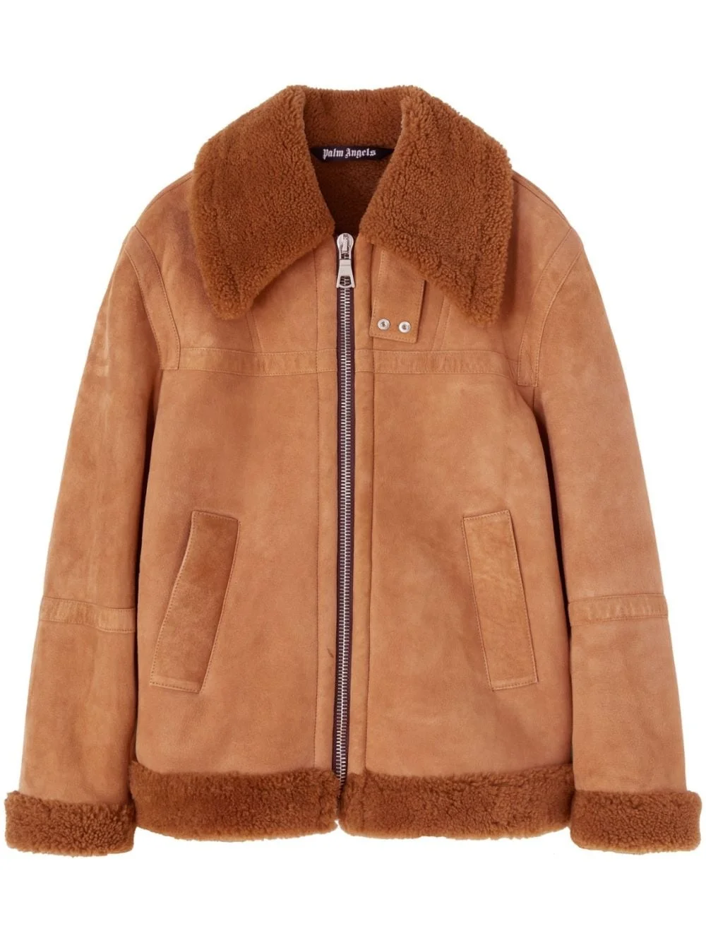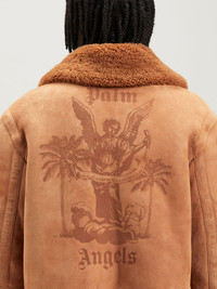 University shearling jacket Characterised by a 'vintage style and timeless silhouettes', Palm Angels' University range takes inspiration from classic American college looks. Part of the edit, this brown jacket boasts a plush shearling lining and an oversized iteration of the brand's University logo across the back. Highlights - Camel brown - Cotton - Shearling lining - Classic collar - Front zip fastening - Two side slit pockets - Long sleeves - Logo print to the rear - Straight hem Imported Composition Outer: Sheep Skin/Shearling 100% Lining: Cotton 100%