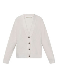 V-neck buttoned cardigan Highlights - Beige - Button fastening - Ribbed knit - V-neck - Long sleeves Made in Italy Composition Wool 40%, Viscose 30%, Polyamide 20%, Cashmere 10% Washing instructions Read Manufacturer Guidelines